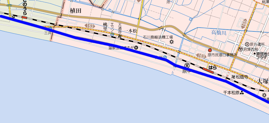 富士 と 港の見える公園 から 沼津 への 抜け道の地図